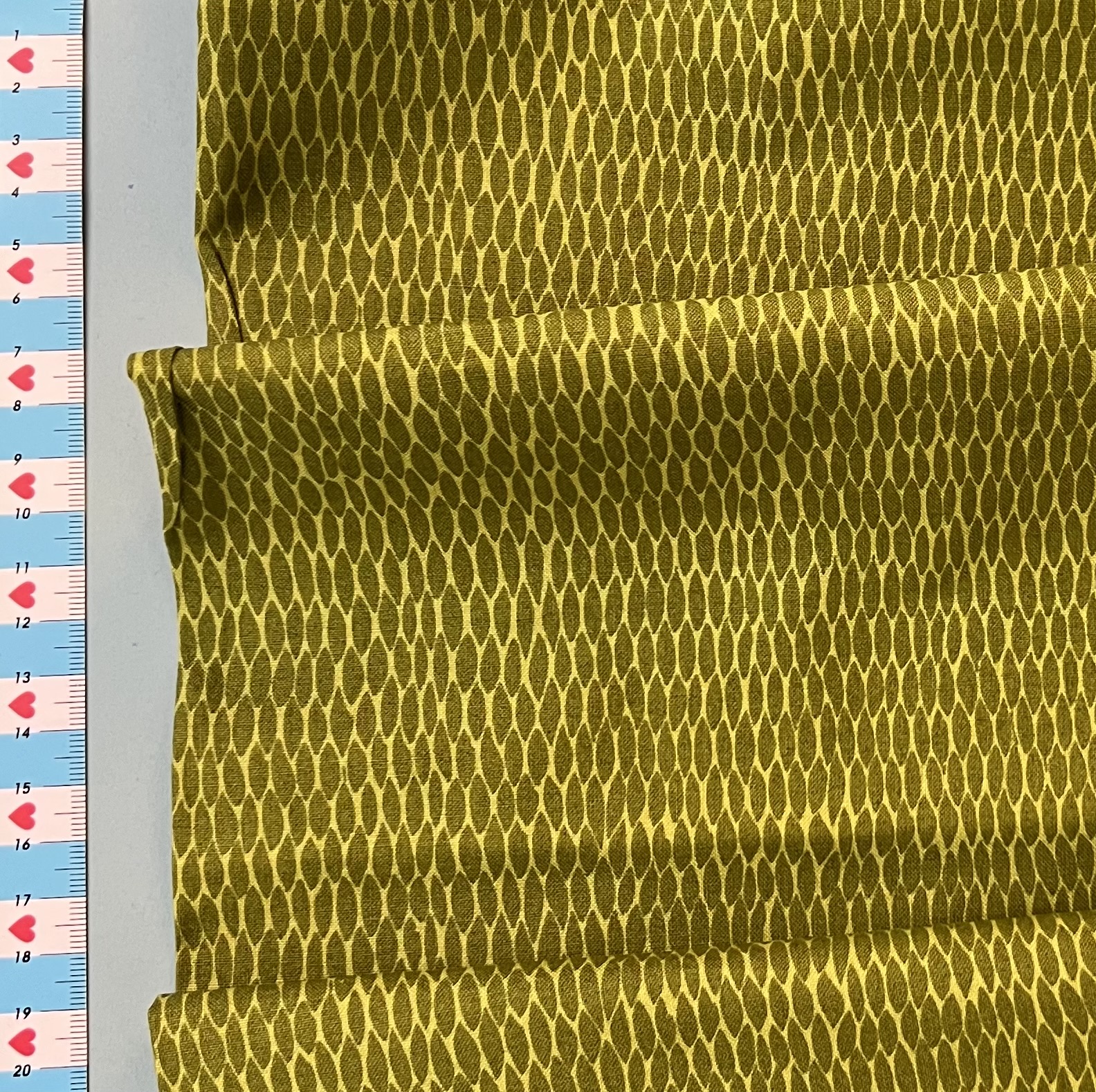 Bei diesem grünen Baumwollstoff handelt es sich um unelastische Webware aus 100% Baumwolle mit einem abstrakten Schuppenmuster. Ein wunderbares Stöffchen zum Nähen von Kissen, Platzdeckchen, Beuteln, Utensilos und vielen anderem dekorativen Taschengut & schmückenden Wohnaccessoires. Aufgrund seines frische Grüns eignet sich sowohl prima für deine Nähprojekte im Frühling und an Ostern als auch an Weihnachten zum Nähen von Osterkörben oder Adventskalendern.